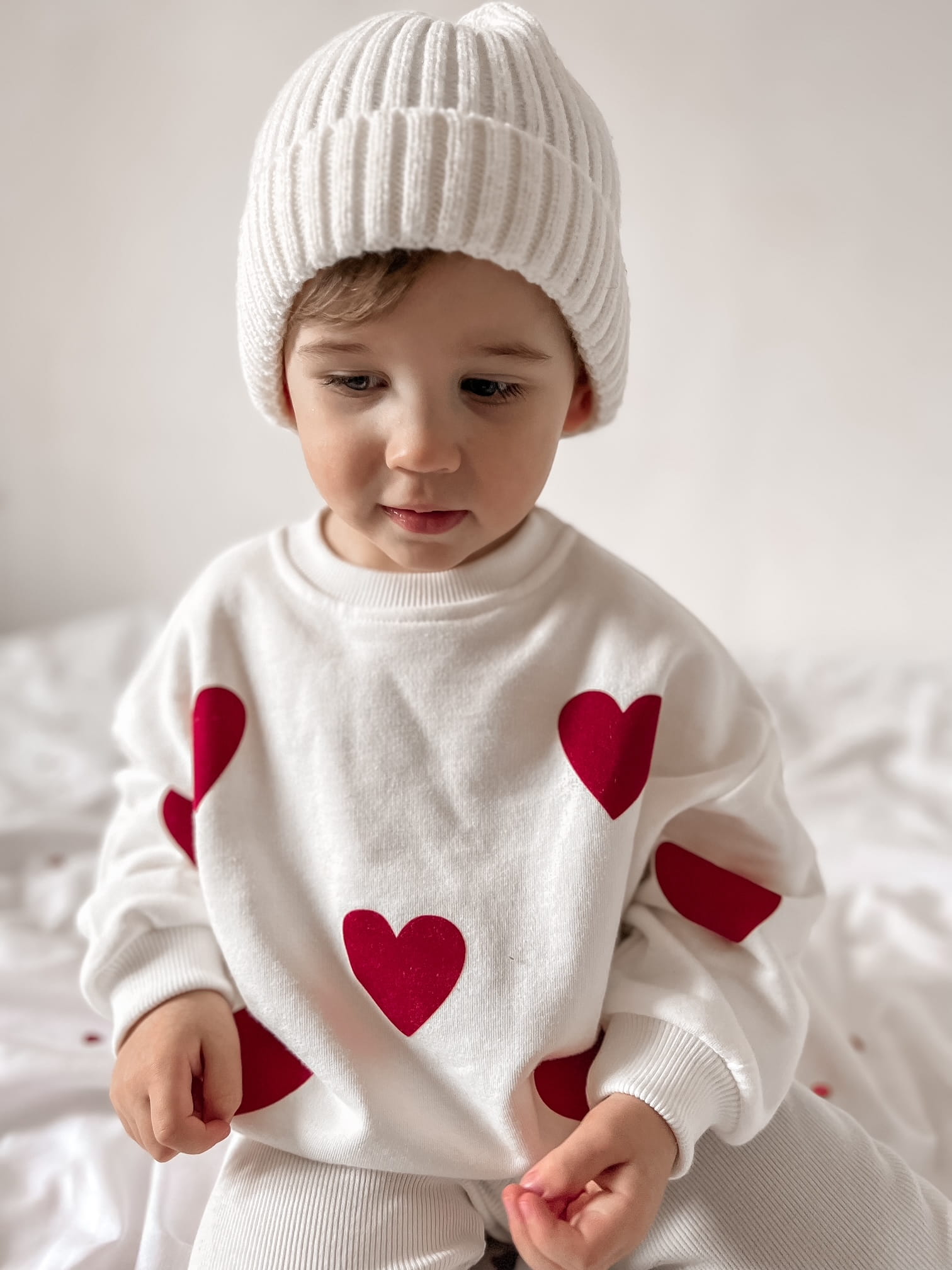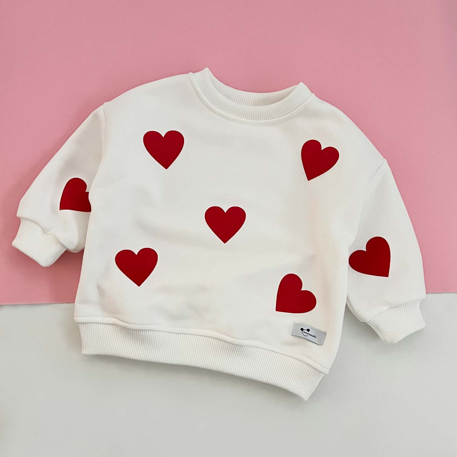 Bluza dziecięca oversize czerwone serca złamana biel