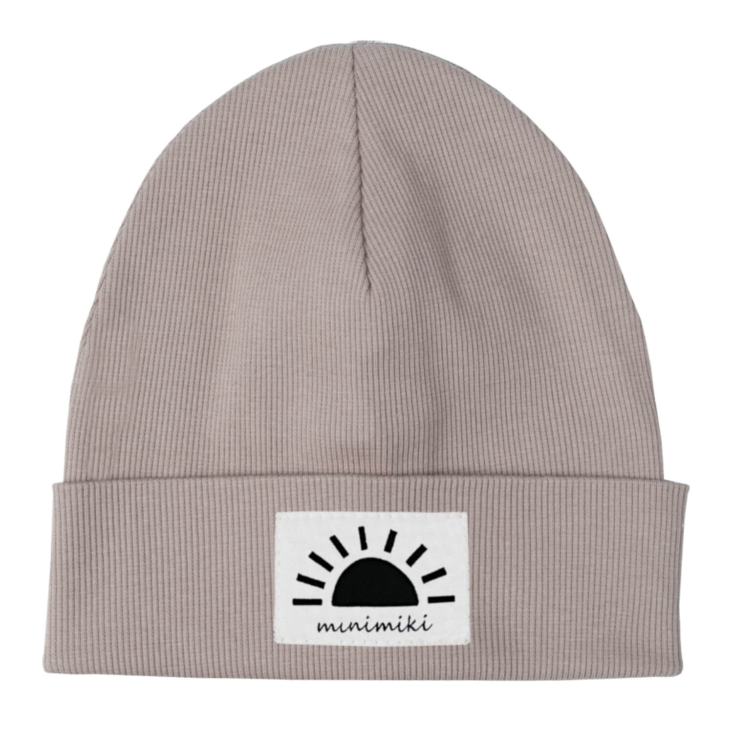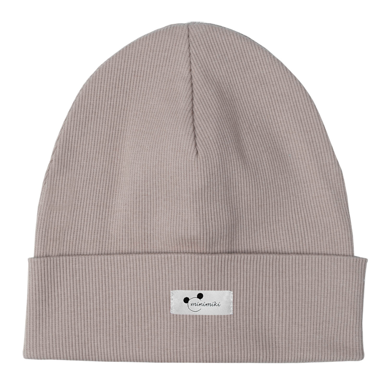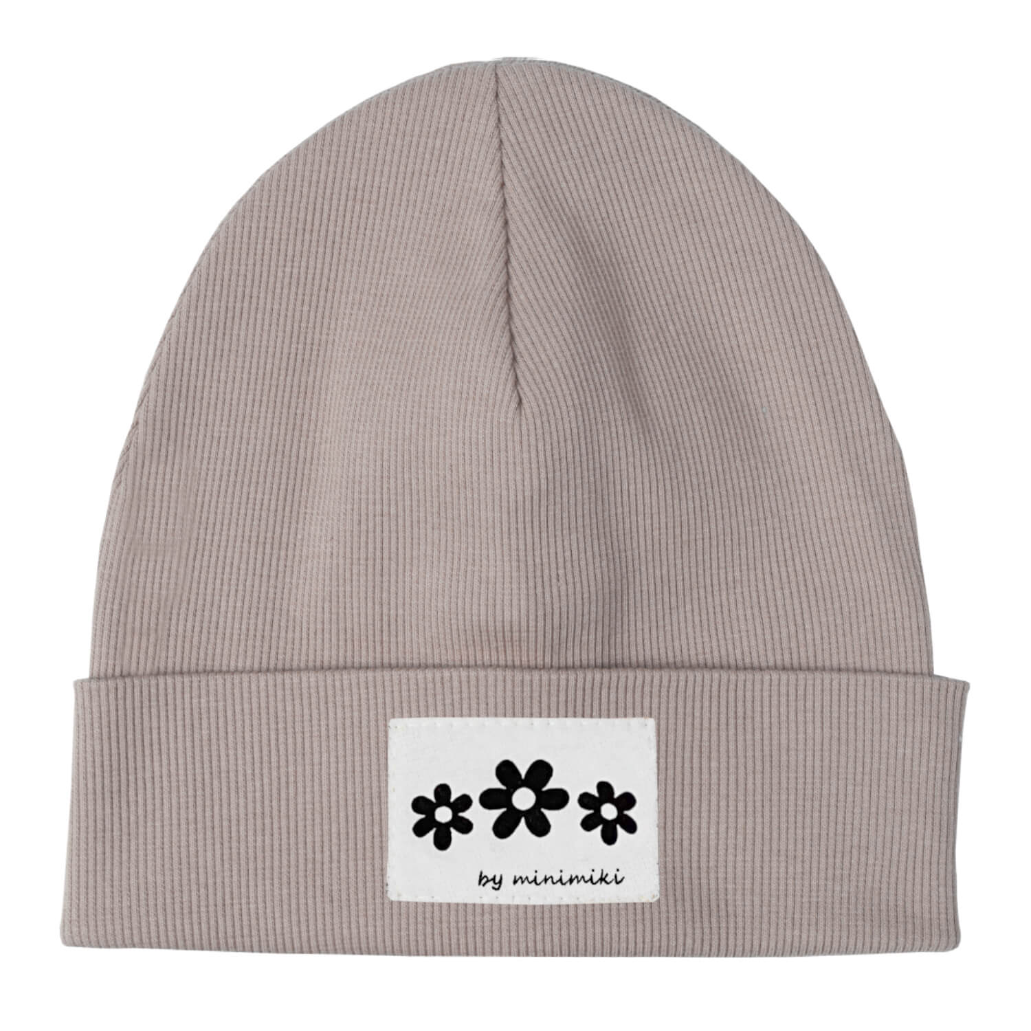Czapka dziecięca typu beanie wykonana z podwójnej warstwy elastycznej dzianiny prążkowanej. Z przodu naszyta metka naszego autorstwa.