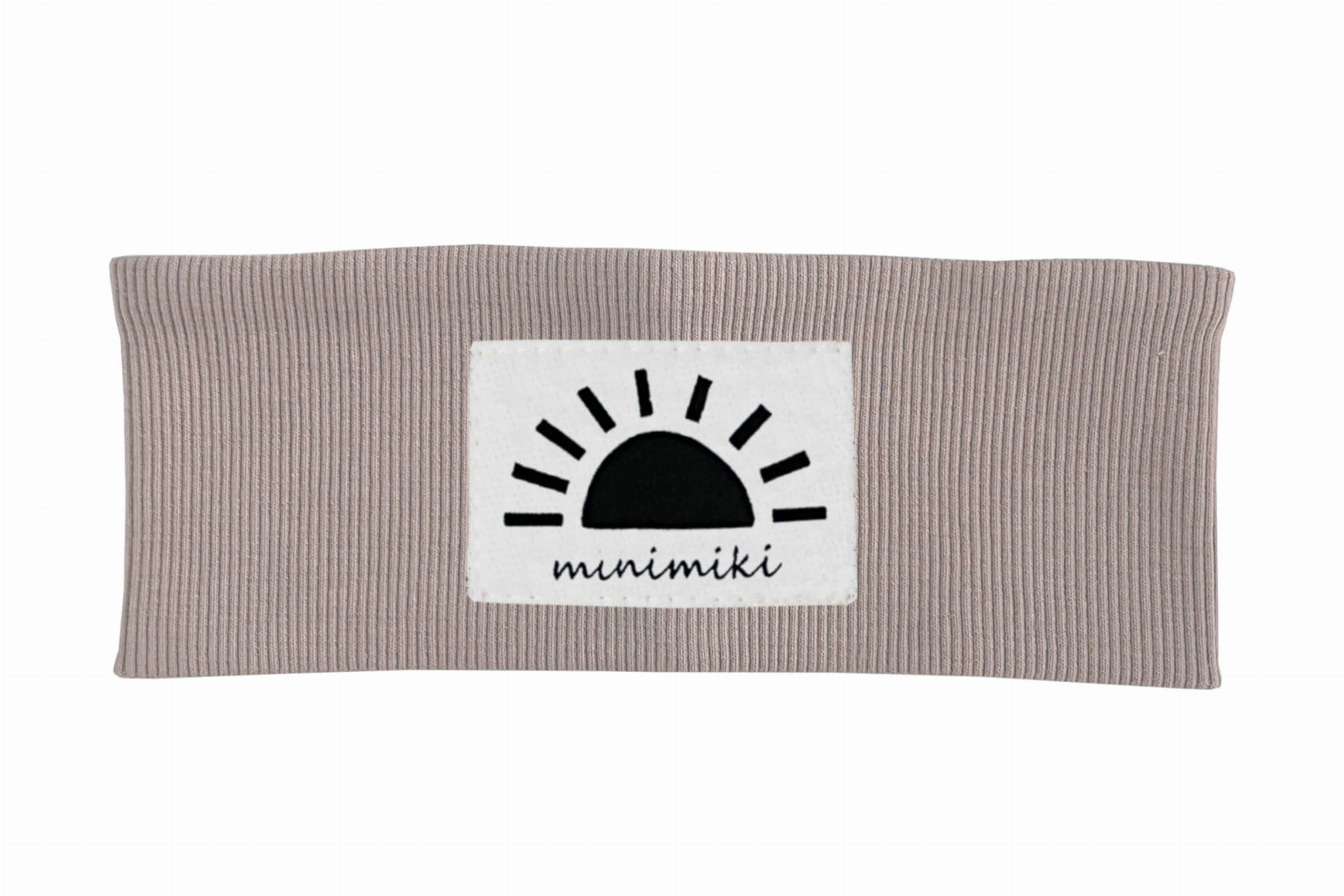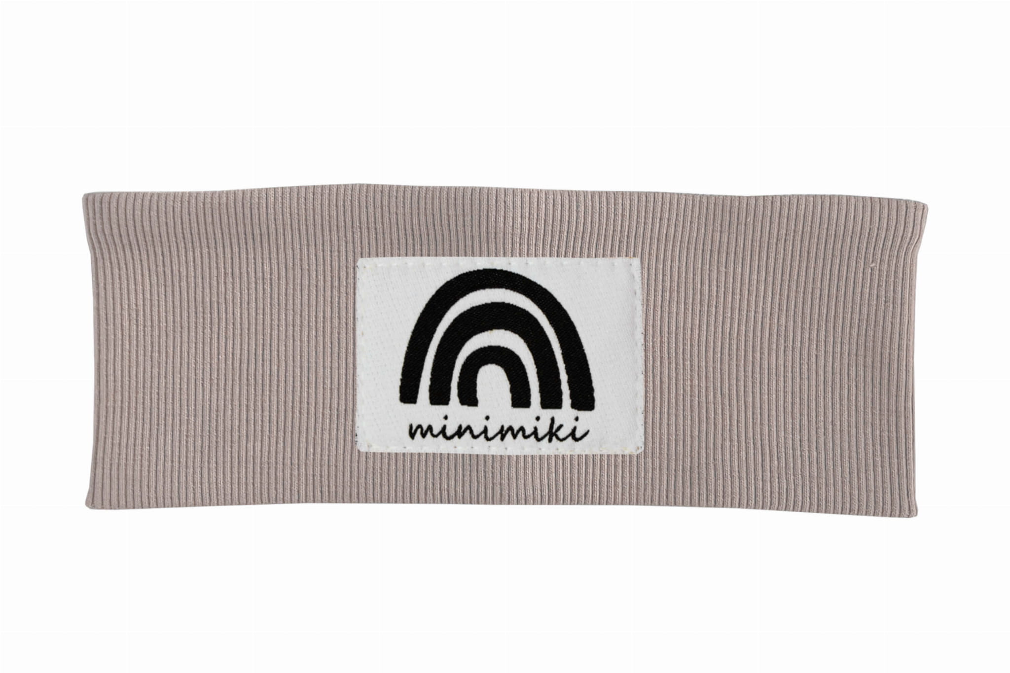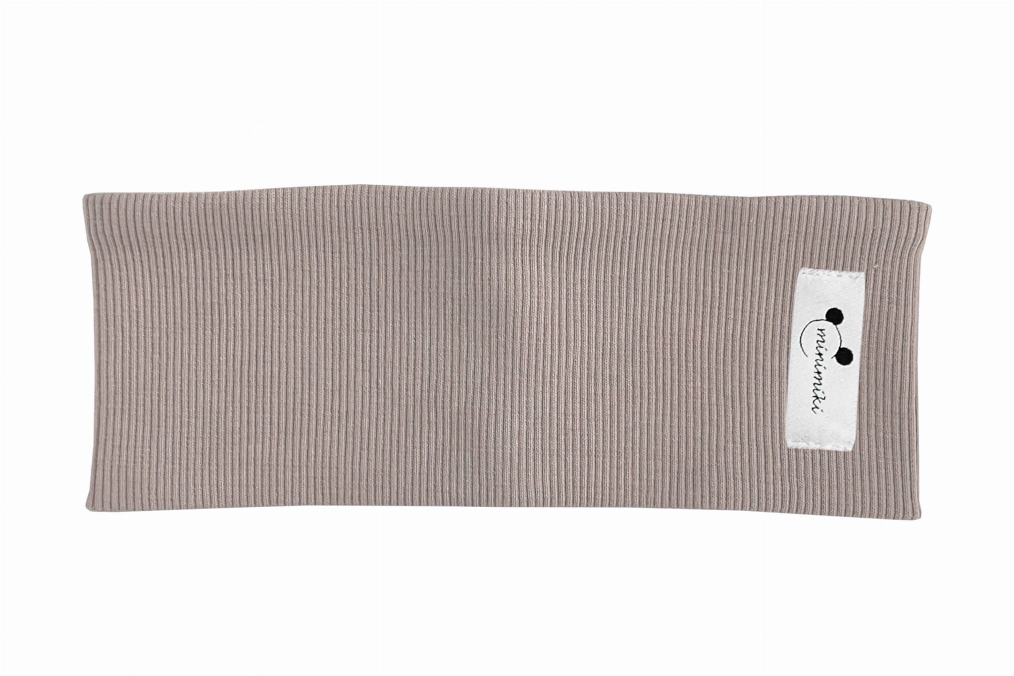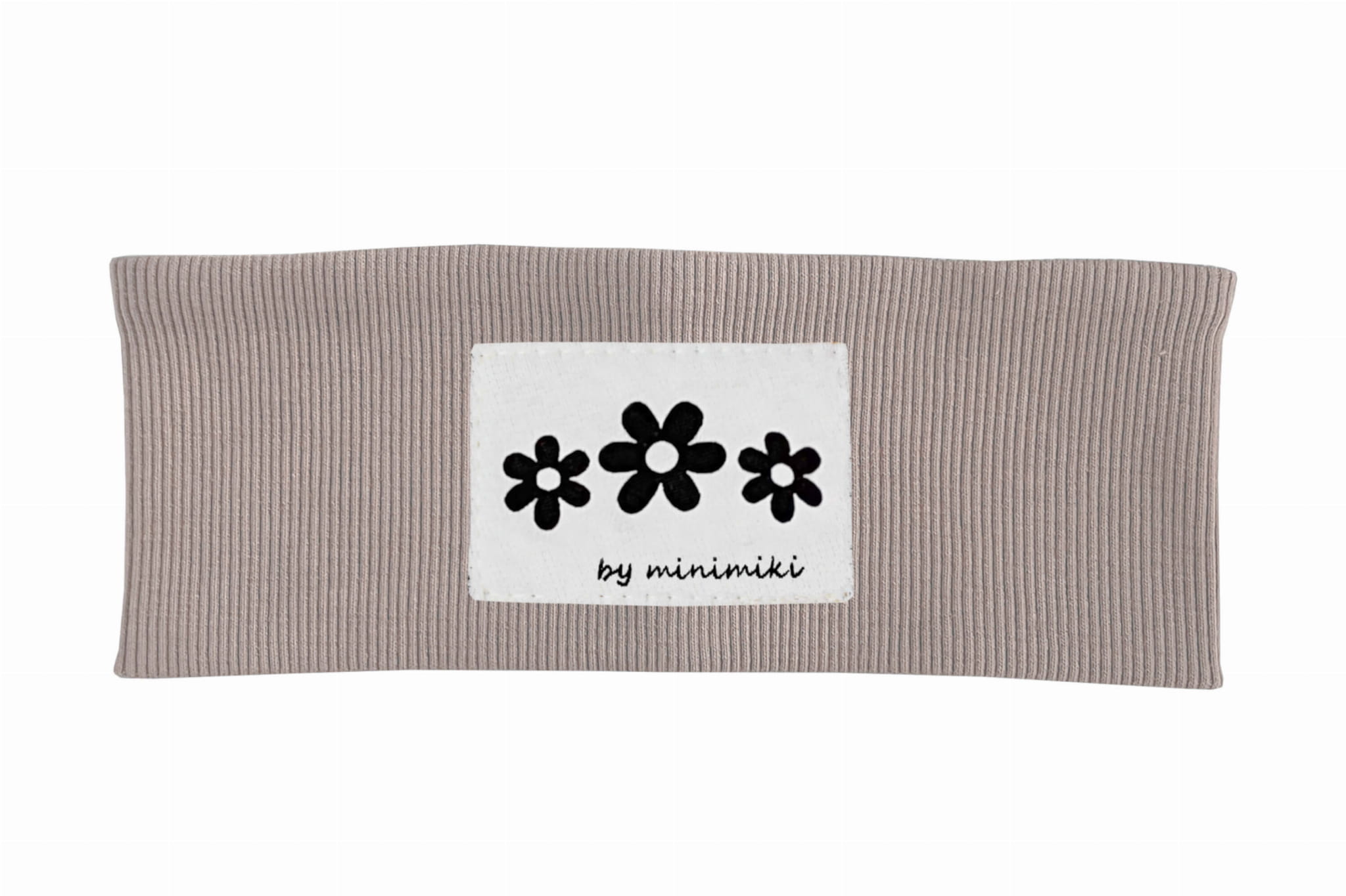 Opaska dziecięca uszyta z dzianiny prążkowanej. Z przodu naszyta charakterystyczna metka naszego autorstwa.