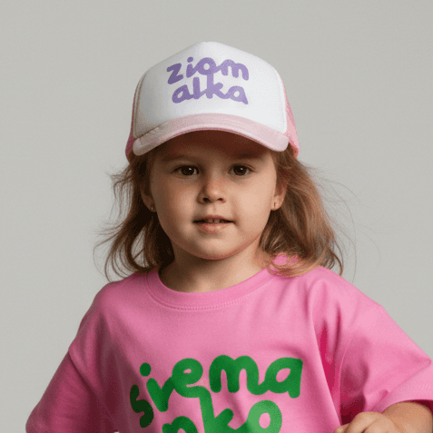 Dziecięca czapka z daszkiem z autorskim nadrukiem z przodu.
