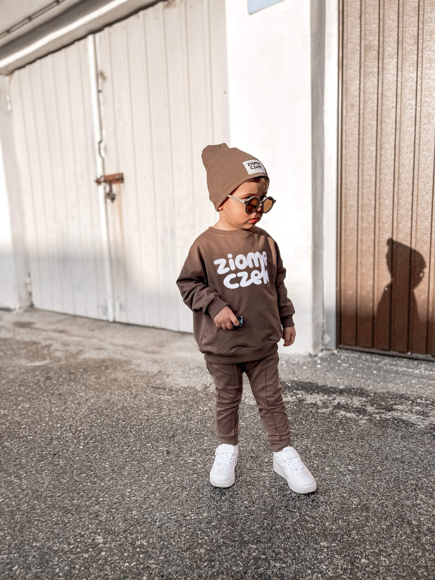 Nasze spodnie dziecięce można nosić przez cały rok oraz dowolnie kompletować z naszymi ubraniami tworząc oryginalny i wygodny look. Świetnie wyglądają z bluzą oversize w tym samym kolorze.